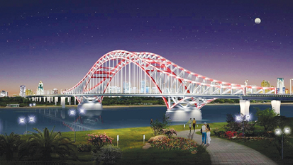 長淮衛(wèi)公路橋及接線工程全長14.1公里。整個工程除長淮衛(wèi)公路橋外,還包括兩座下穿鐵路立交橋和兩座小型橋梁,工程概算總投資約18億元。據(jù)介紹,長淮衛(wèi)公路橋總長4266米,南起龍子湖區(qū)長淮衛(wèi)鎮(zhèn),北接淮上區(qū)吳小街鎮(zhèn)。大橋主橋長360米,寬42.5米,為雙向八車道;引橋部分略窄,寬41.5米。長淮衛(wèi)橋采用桁架拱橋橋型,主體為鋼結構,遠望如飛龍橫跨淮河,氣勢宏偉。我市現(xiàn)有的三座淮河公路橋分別是斜拉橋、梁式橋和懸索橋,如今再添桁架拱橋,一橋一景,仿佛橋梁博物館。