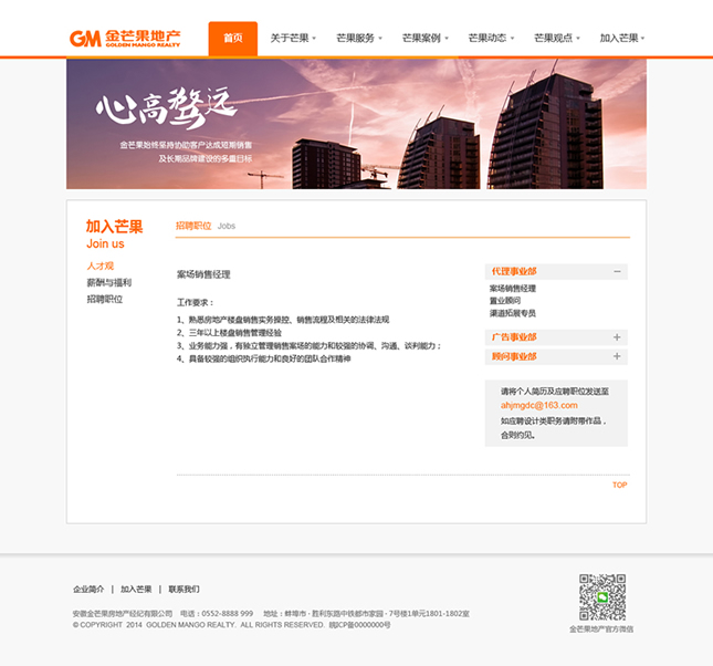 金芒果基于對中國房地產(chǎn)的執(zhí)著追求,憑借對市場營銷的激情創(chuàng)新,以完全經(jīng)過市場檢驗的專家團(tuán)隊和對市場的敏銳天賦,大膽構(gòu)思、執(zhí)著實踐、激情專注、科學(xué)分析,贏得了業(yè)主的廣泛認(rèn)同和支持,并以優(yōu)異業(yè)績和服務(wù)質(zhì)量,被客戶譽(yù)為具實效、富激情、科學(xué)嚴(yán)謹(jǐn)?shù)膶I(yè)房地產(chǎn)服務(wù)商。