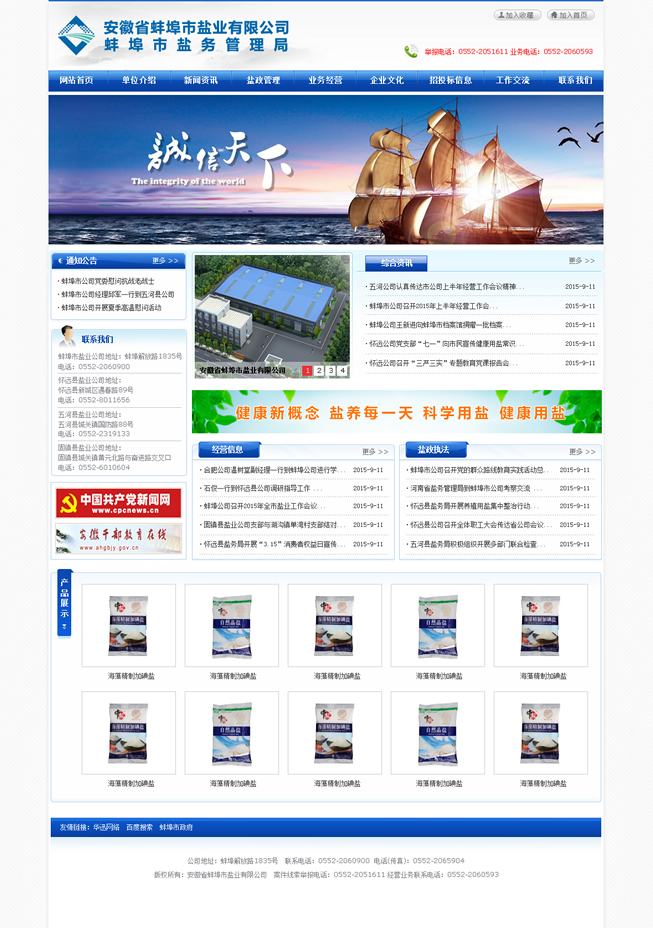 多年來,蚌埠鹽業(yè)認(rèn)真貫徹落實國家《食鹽專營辦法》、《食鹽加碘消除碘缺乏危害管理條例》,始終以食鹽市場安全穩(wěn)定為天職,忠實履職,恪盡職守。一方面對全市鹽業(yè)市場進行鹽政監(jiān)管,嚴(yán)厲打擊鹽業(yè)違法犯罪,全力維護食鹽市場安全穩(wěn)定;另一方面負(fù)責(zé)組織開展食鹽專營,致力為消費者提供安全、優(yōu)質(zhì)、放心的加碘食鹽,確保全市371萬人口的食鹽供應(yīng)。與此同時,蚌埠鹽業(yè)主動適應(yīng)市場需要,積極拓展非鹽經(jīng)營,在發(fā)展的道路上不斷深化改革,自主創(chuàng)新,產(chǎn)業(yè)結(jié)構(gòu)轉(zhuǎn)型邁出堅實步伐,全區(qū)總資產(chǎn)已近8000萬元,現(xiàn)有經(jīng)營倉儲面積約1.5萬平米,在建倉庫1萬余平米。2014年實現(xiàn)銷售收入14762.69萬元,其中食鹽銷售4967.40萬元,非鹽銷售9795.20萬元、實現(xiàn)利稅1124.52萬元,經(jīng)濟社會效益居全省同行領(lǐng)先。先后榮獲全省鹽業(yè)系統(tǒng)先進單位五連冠、安徽省勞動保障誠信示范企業(yè)、安徽省衛(wèi)生先進單位、檔案管理考核安徽省一級單位、蚌埠市A級納稅信用單位、蚌埠市第十四屆文明單位等多項榮譽稱號。